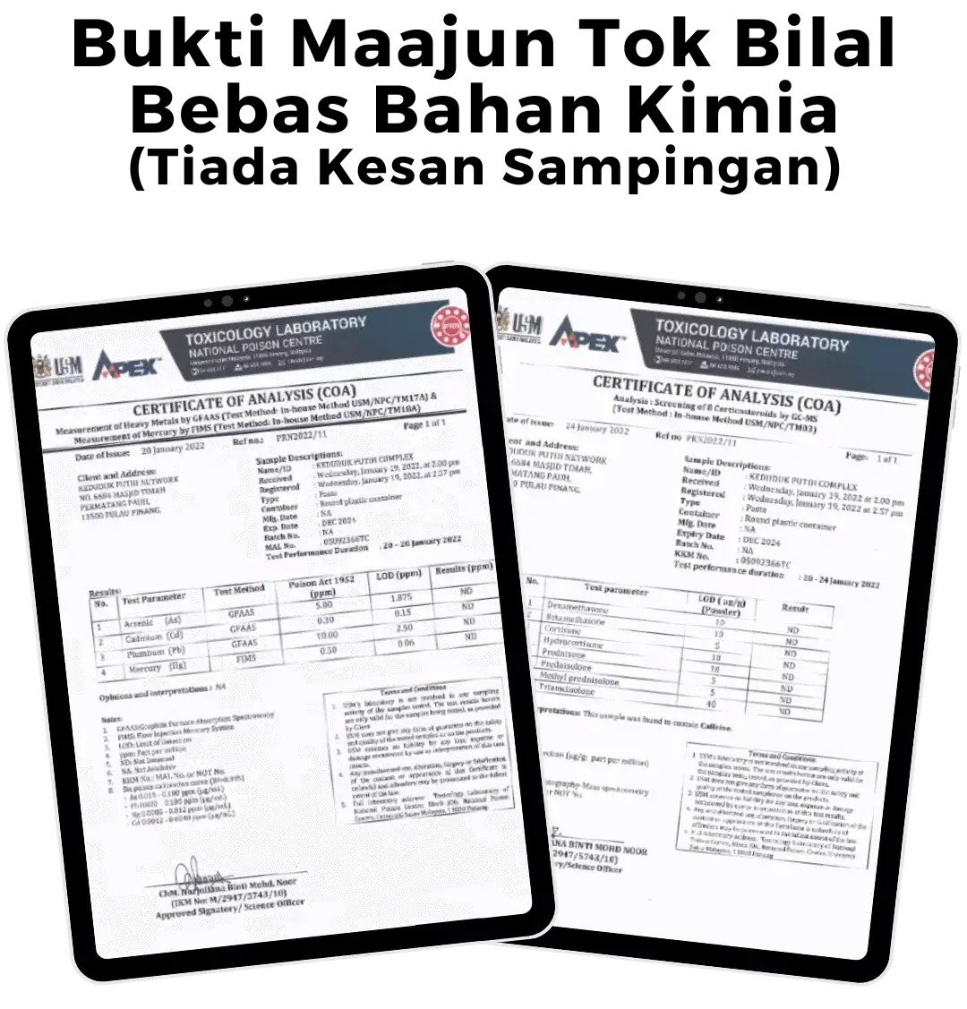 Kami sertakan (di atas) bukti ujian makmal dan juga kajian dari pakar pakar dari Universiti serata Malaysia.