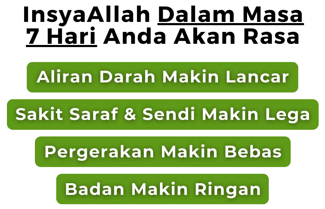 Biasanya seawal 2 hari pengambilan sudah dapat nampak kesan yang positif.