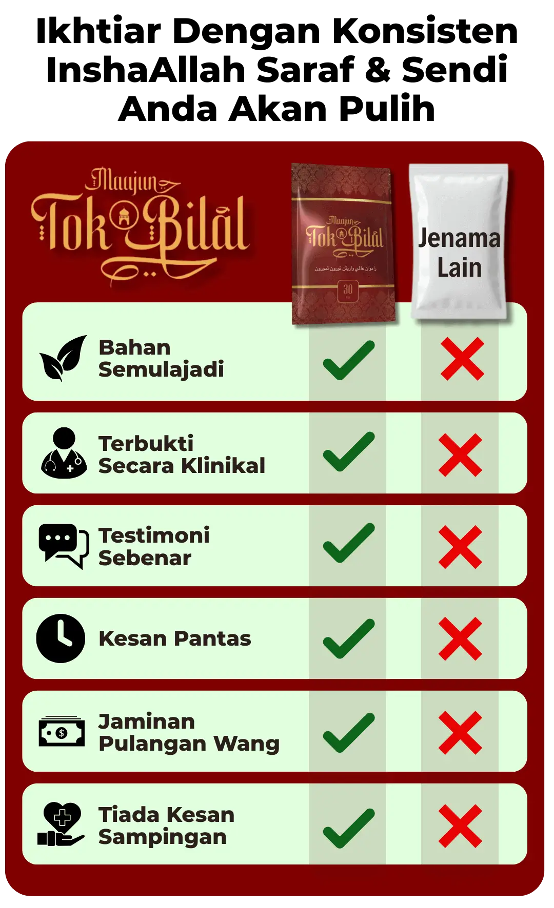 Bagi anda yang mengalami masalah saraf & sendi, sakit lutut, angin, kebas kebas dan seangkatan dengannya, anda digalakkan untuk amalkan Maajun Tok Bilal Ni.
