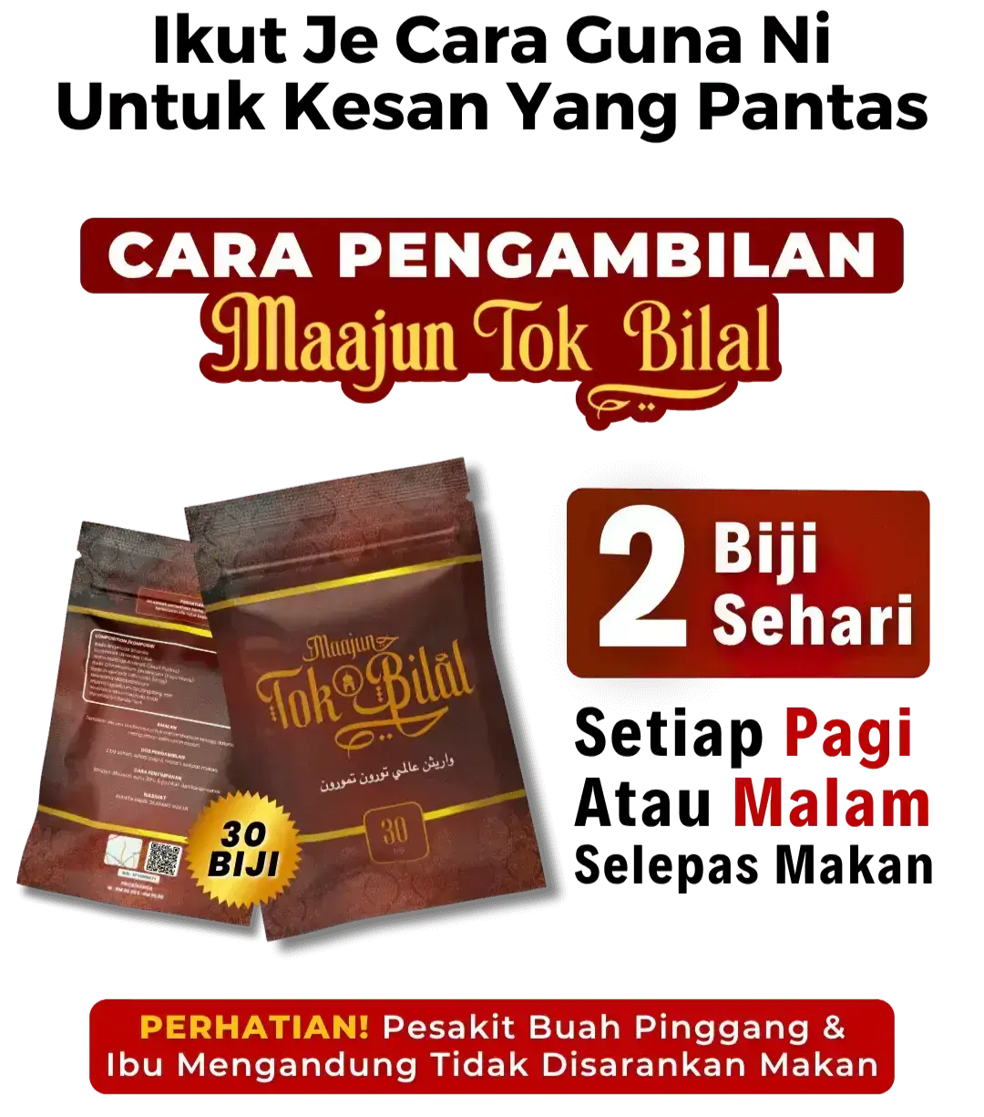 Anda tak perlu risau. ianya berbeza dari jamu/majun/ubatan kimia yang lain. Maajun Tok Bilal 100% diperbuat dari 100% herba. Tiada sebarang kesan sampingan.